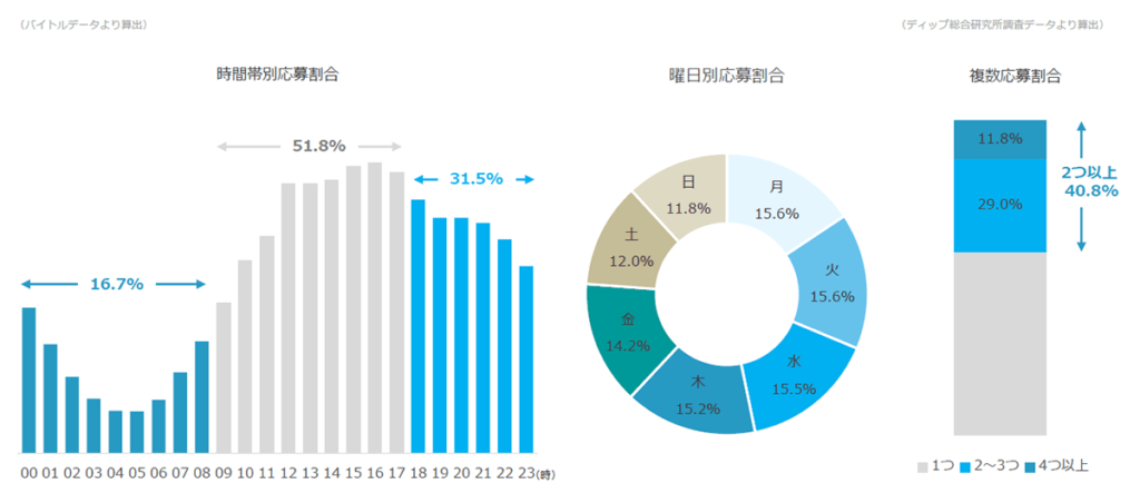 対応時間外の応募も多く、約4割は複数応募