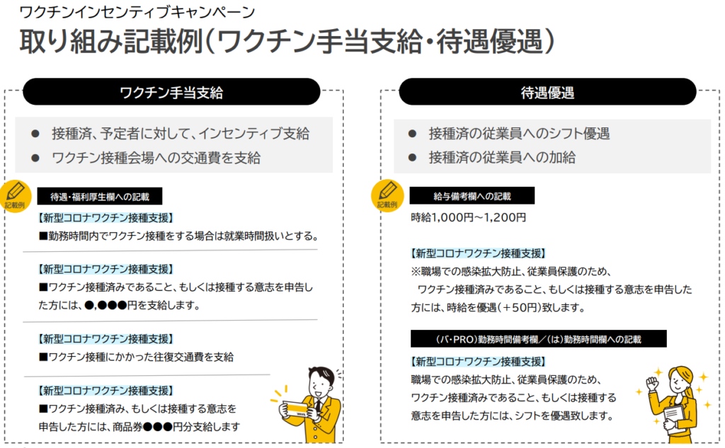 例)ワクチン接種済みであること、もしくは接種する意志を申告した方は、時給を+50円
