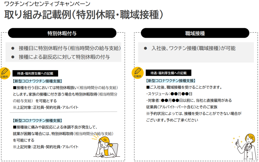 ワクチンインセンティブCPの参画、かつ「5,000円以上の金銭支給or特別休暇付与」を条件に掲載頂くこと