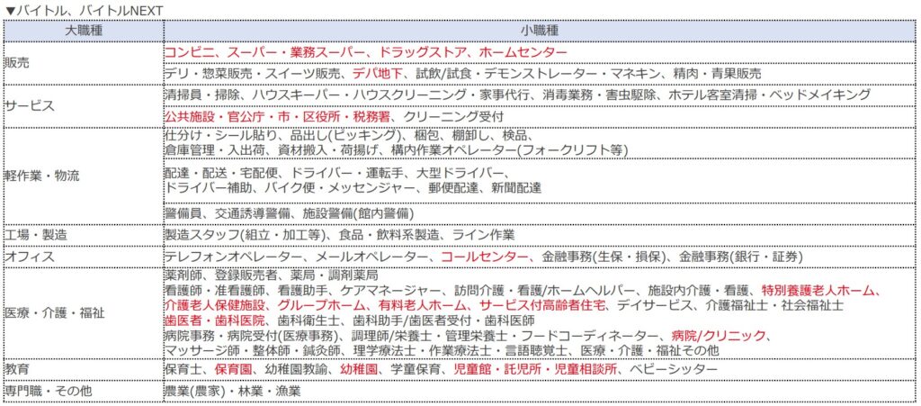 ※該当職種に迷った場合は、バイトルのサイト上で職種検索を行いご確認ください。