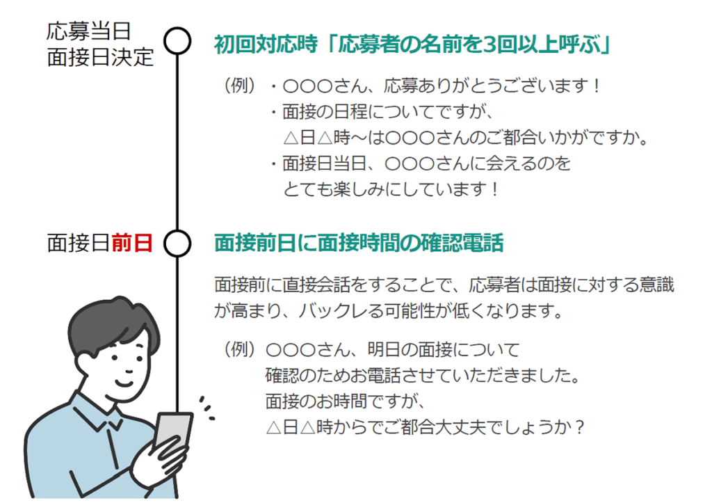 応募者の緊張を和らげるための配慮や、当日の手順について具体的に伝えることで、安心感を与えることができます。