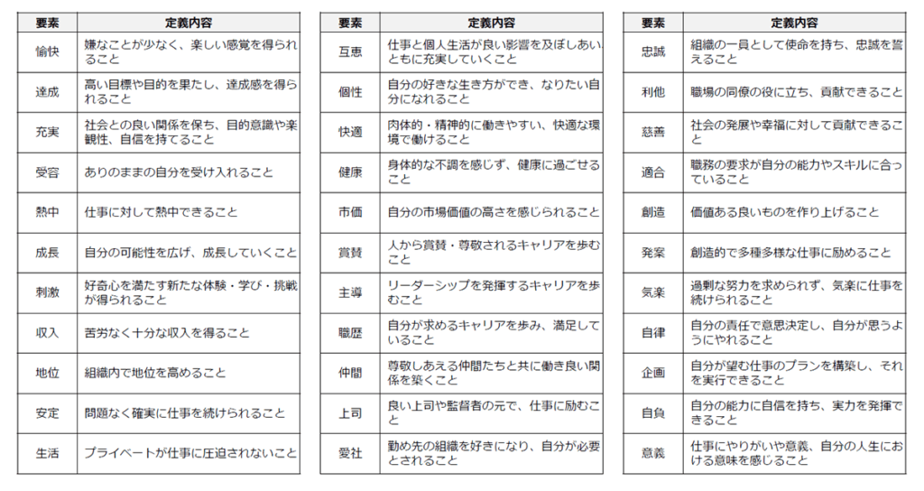 『働く幸せ』の33要素の定義内容