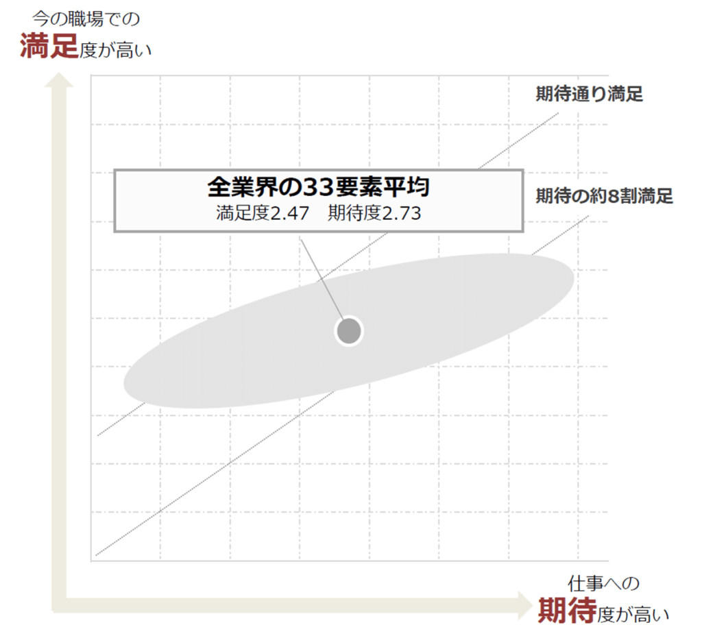 仕事への期待度が平均より高いのに満足度が低いと、大きなギャップを感じてしまいます。