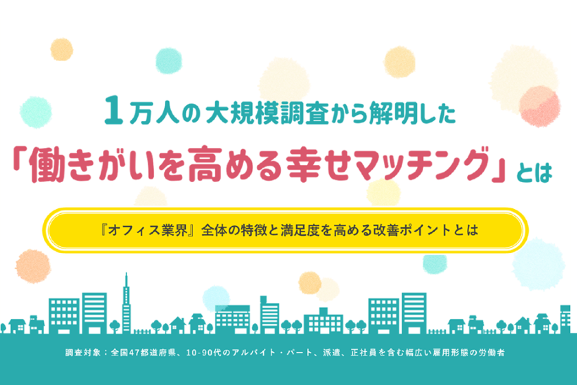 本調査では、働く人々がどのような幸せを重視し、その幸せがどれほど満たされているのかを深く掘り下げ、さまざまな職種に応じて、それぞれが感じる『働く幸せ』の特徴を明らかにしました。今回はオフィス業界で働く人々の満足度を高める要素についてまとめました。