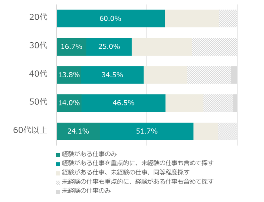 さらに年代別でみると、特に20代、 60代以上が経験のあるお仕事を優先する傾向に。