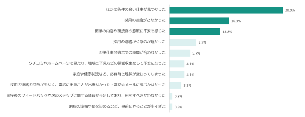 Q. 面接実施後に、辞退したことはありますか?あれば、辞退した理由で最もあてはまるものをひとつ教えてください。