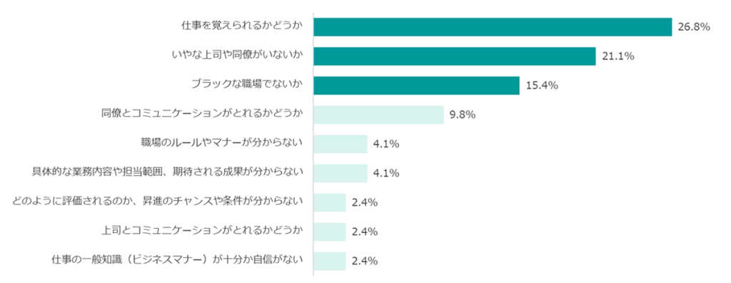 Q. 初出勤のときに不安に感じることで、最もあてはまるものをひとつ選択ください。