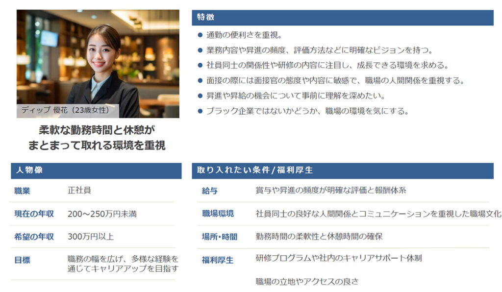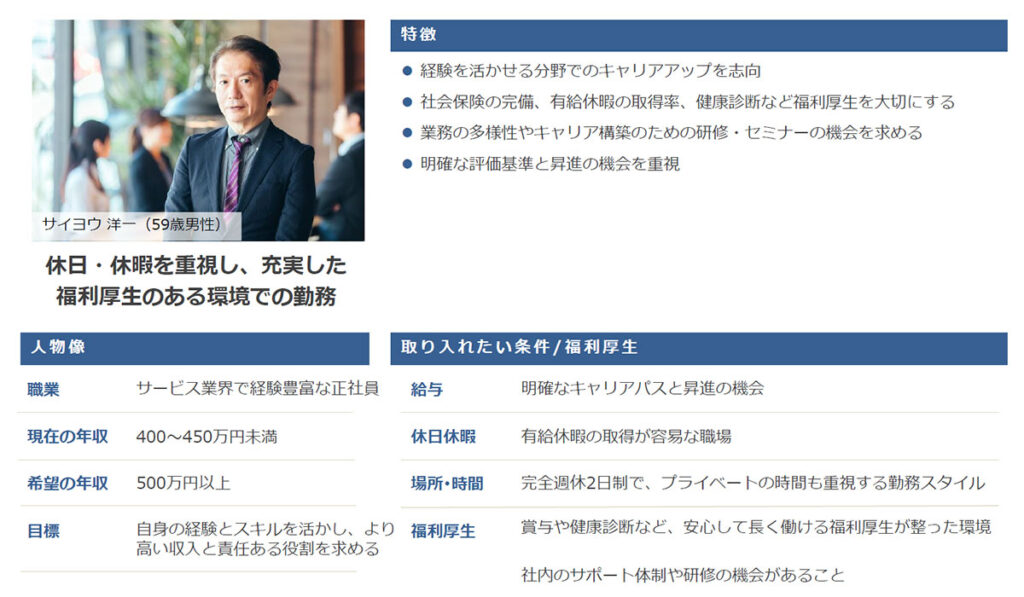 ※ユーザーアンケートを参照しターゲットを想定しております。このような方の採用ができる保障ではございません。