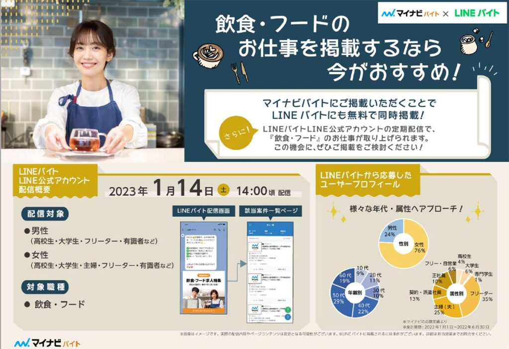 マイナビバイトにご掲載いただくことで、LINEバイトにも無料で同時掲載!