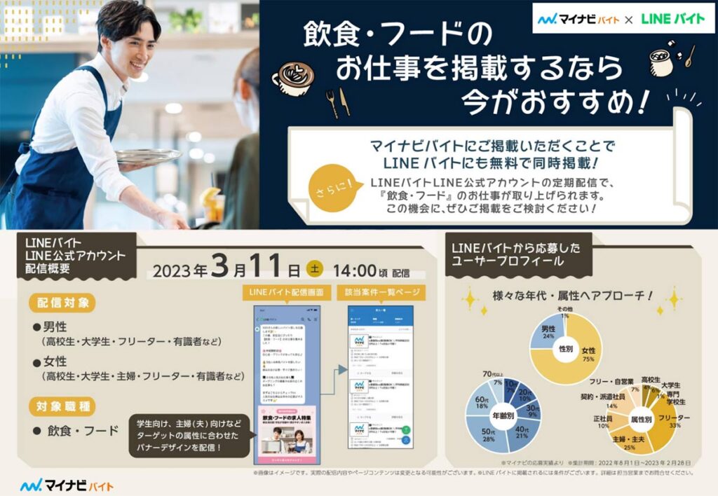 マイナビバイトにご掲載いただくことで、LINEバイトにも無料で同時掲載!