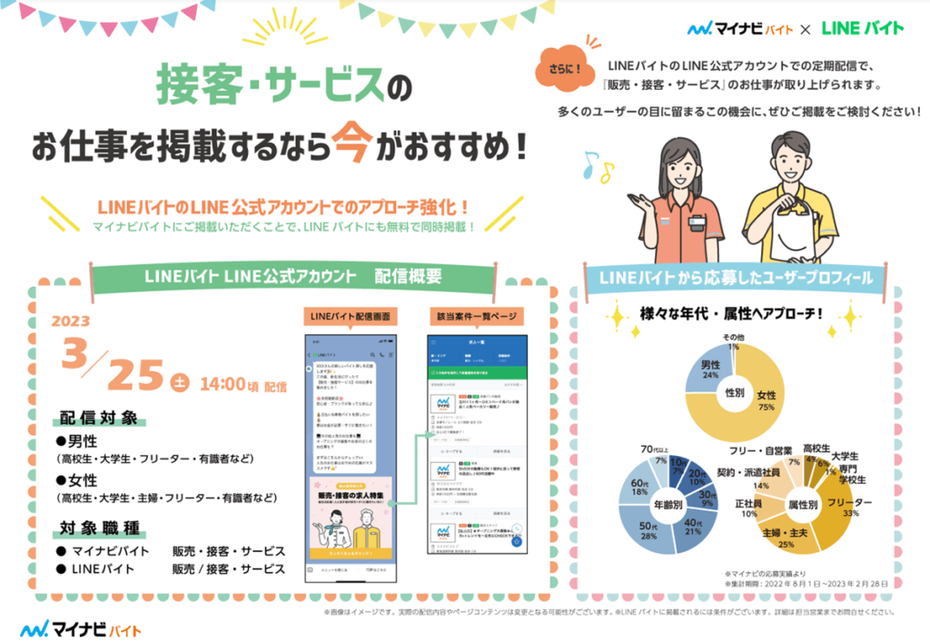 マイナビバイトにご掲載いただくことで、LINEバイトにも無料で同時掲載!