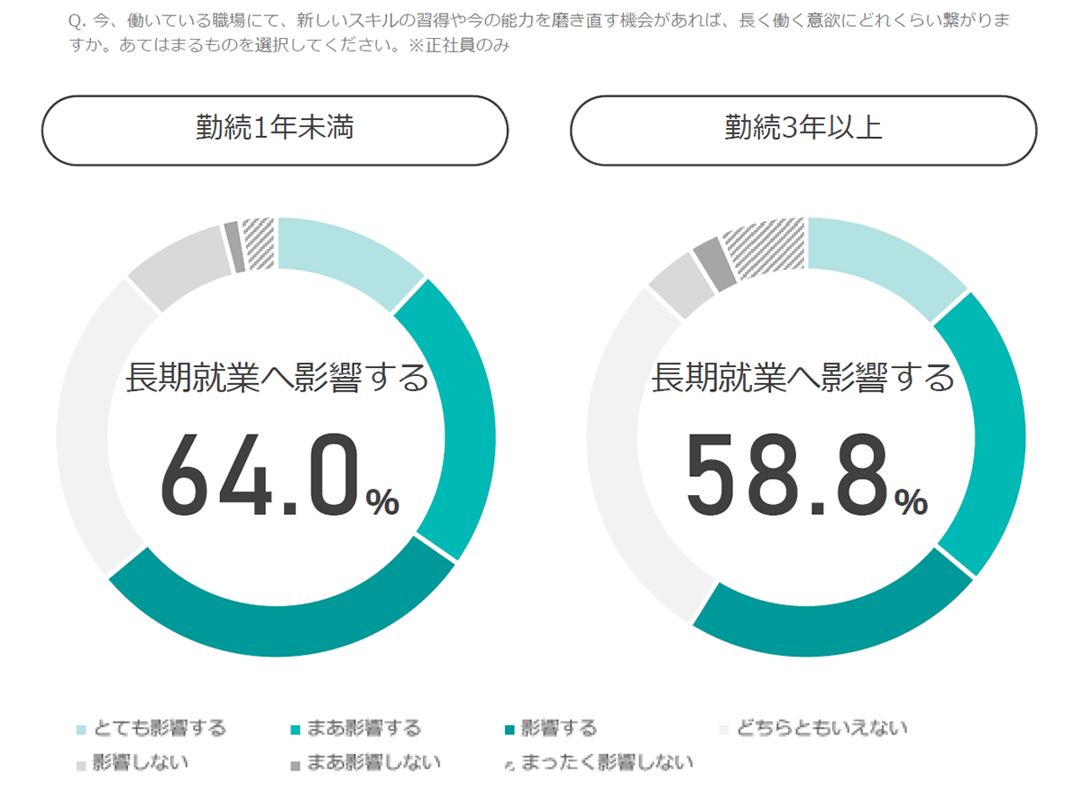 リスキリングへの取り組みが長く働く意欲に繋がる割合が約6割。