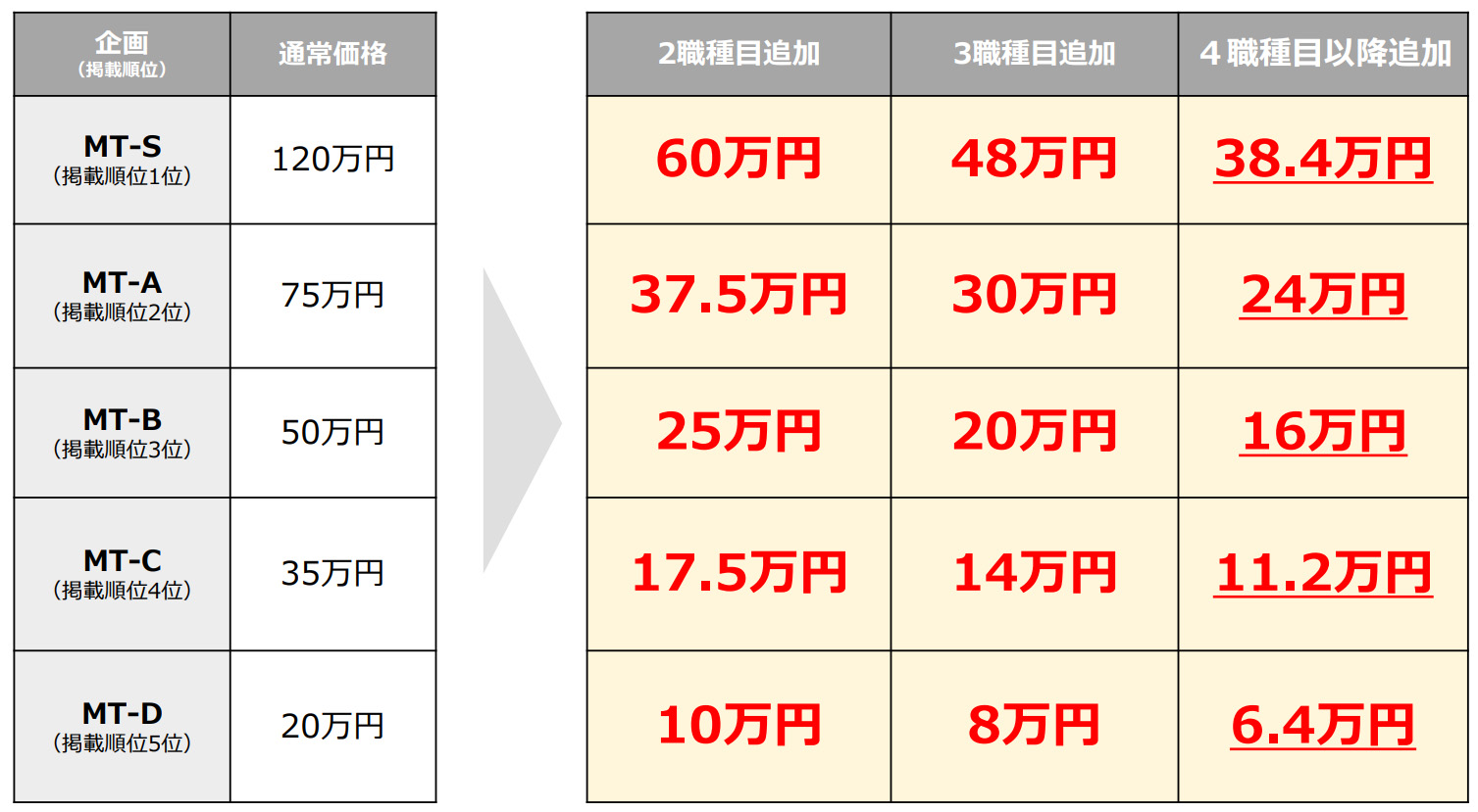 ※2職種目以降のご掲載期間は、1職種目のご掲載期間に準じます(MT-D企画においても同様です)