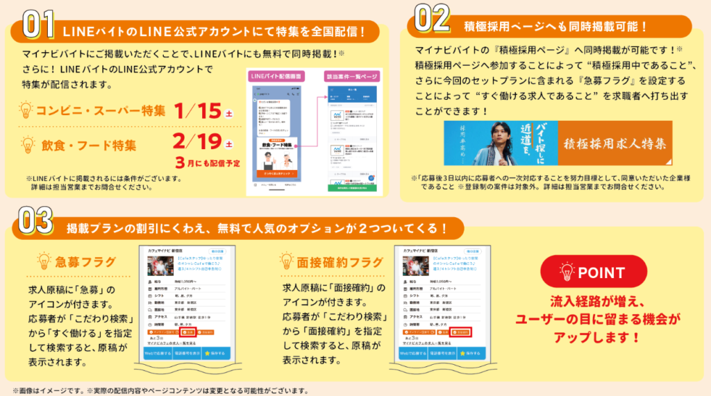 マイナビバイト掲載上位プラン30%OFF+オプション「急募フラグ」「面接確約フラグ」が無料!