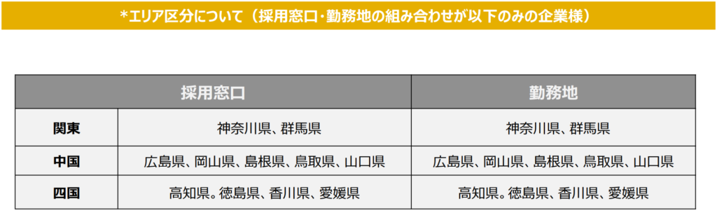 採用窓口と勤務地が以下「エリア区分について」に当てはまる企業様