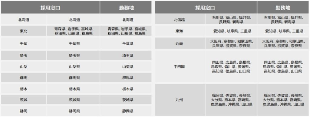 <エリア区分について(採用窓口・勤務地が以下のみの企業様)>
