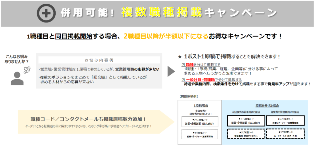 ※複数職種掲載キャンペーンの詳細・注意事項は複数職種掲載キャンペーン資料をご確認ください。