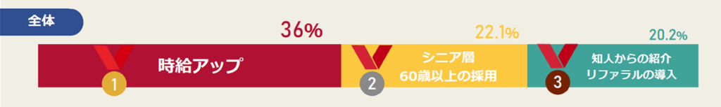 採用率向上のために時給UPをメインに、様々な取り組みを実施していることがわかりました。