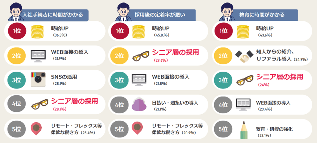 シニア層を採用することで、採用後の課題改善に期待ができます。