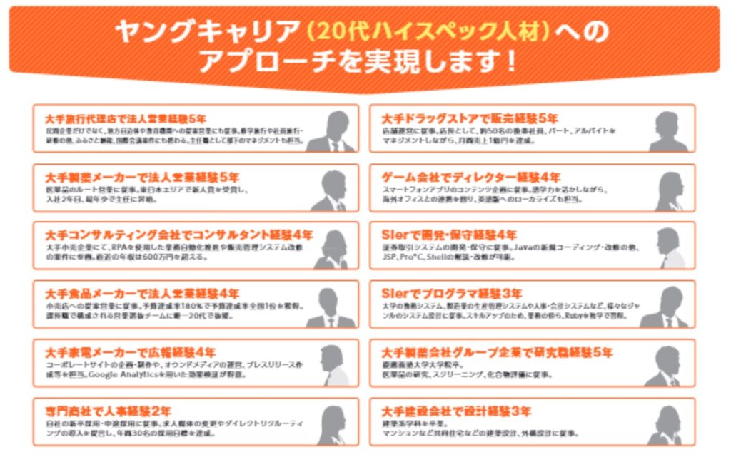| プラン詳細 | プラチナスカウトメール400通 スカウトメール1600通 各種特集掲載5枠 プラチナ求人案内4回 上位表示4週間 | スカウトメール800通 各種特集掲載3枠 プラチナ求人案内2回 上位表示3週間 | スカウトメール400通 各種特集掲載2枠 求人案内2回 上位表示2週間 | スカウトメール100通 各種特集掲載1枠 求人案内2回 上位表示1週間 |