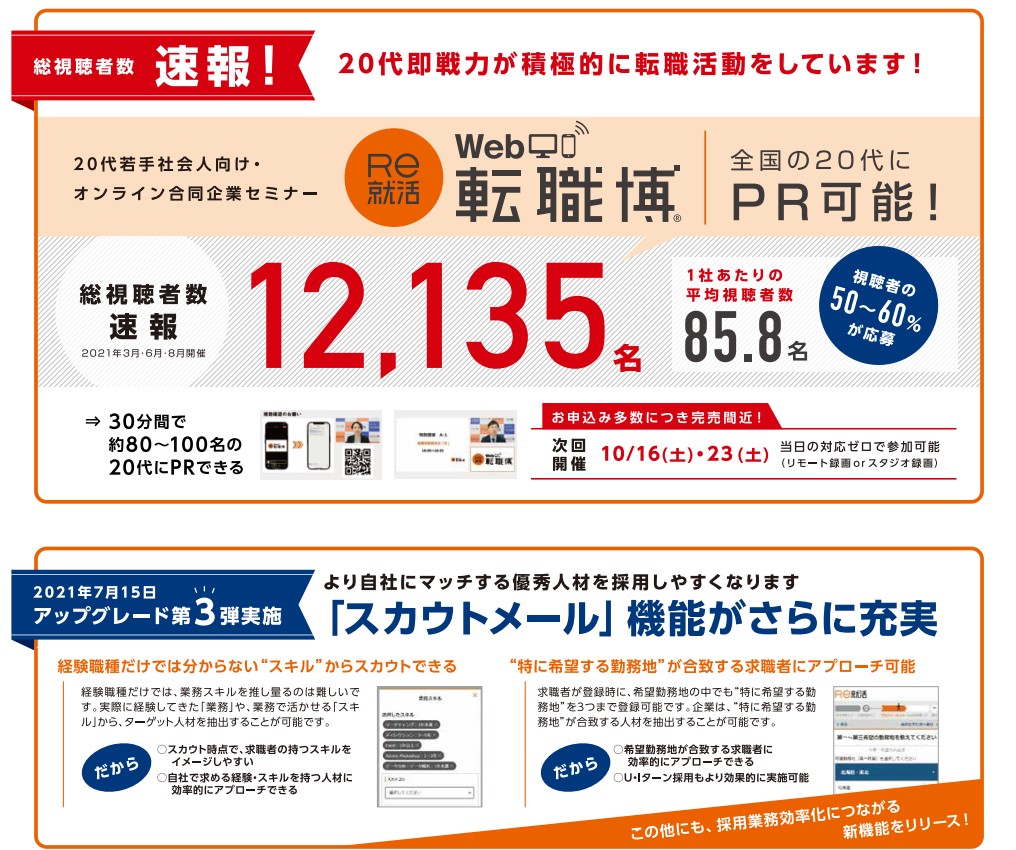 | C | ①スカウトメール200通追加 ※掲載8週間で200通 (32万円相当) | or | ②プラチナスカウトメール100通追加 ※掲載8週間で100通 (40万円相当) | or | ③プラチナ カルーセルバナー ※1週間利用可能 (20万円相当) |