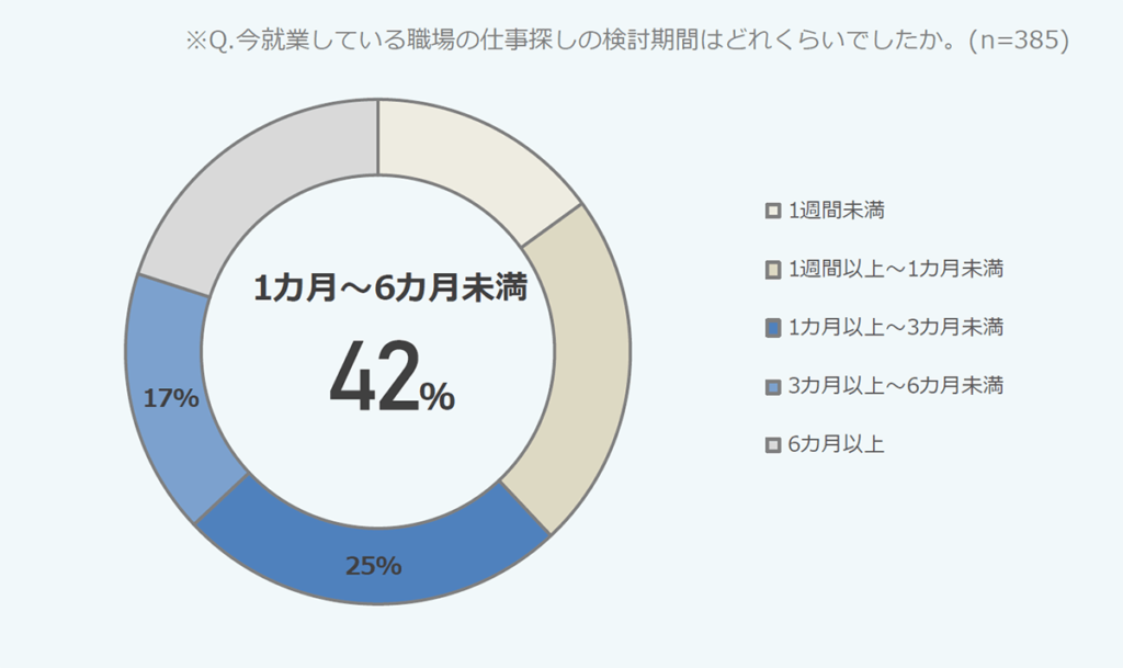 現在の勤務先で正社員かつ1年以上勤務している方は1か月~6か月前から、仕事探しをしています。