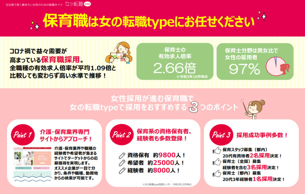 日々女の転職 type をご愛顧いただき、ありがとうございます。介護・医療・福祉系カテゴリー職種限定でPプランにて長期のご掲載が可能なプランをご用意いたしました。この機会を是非お見逃しなく!